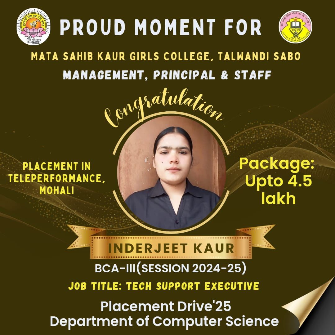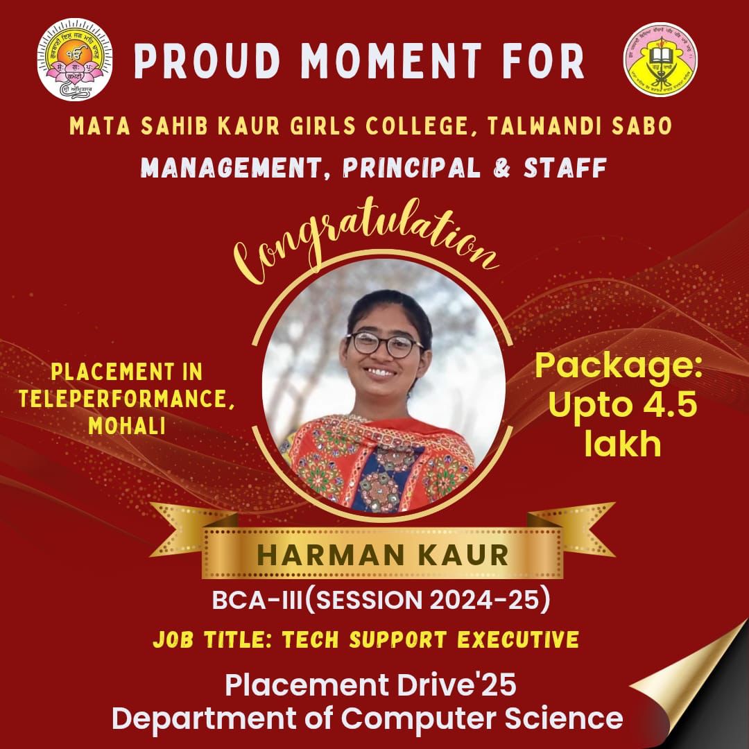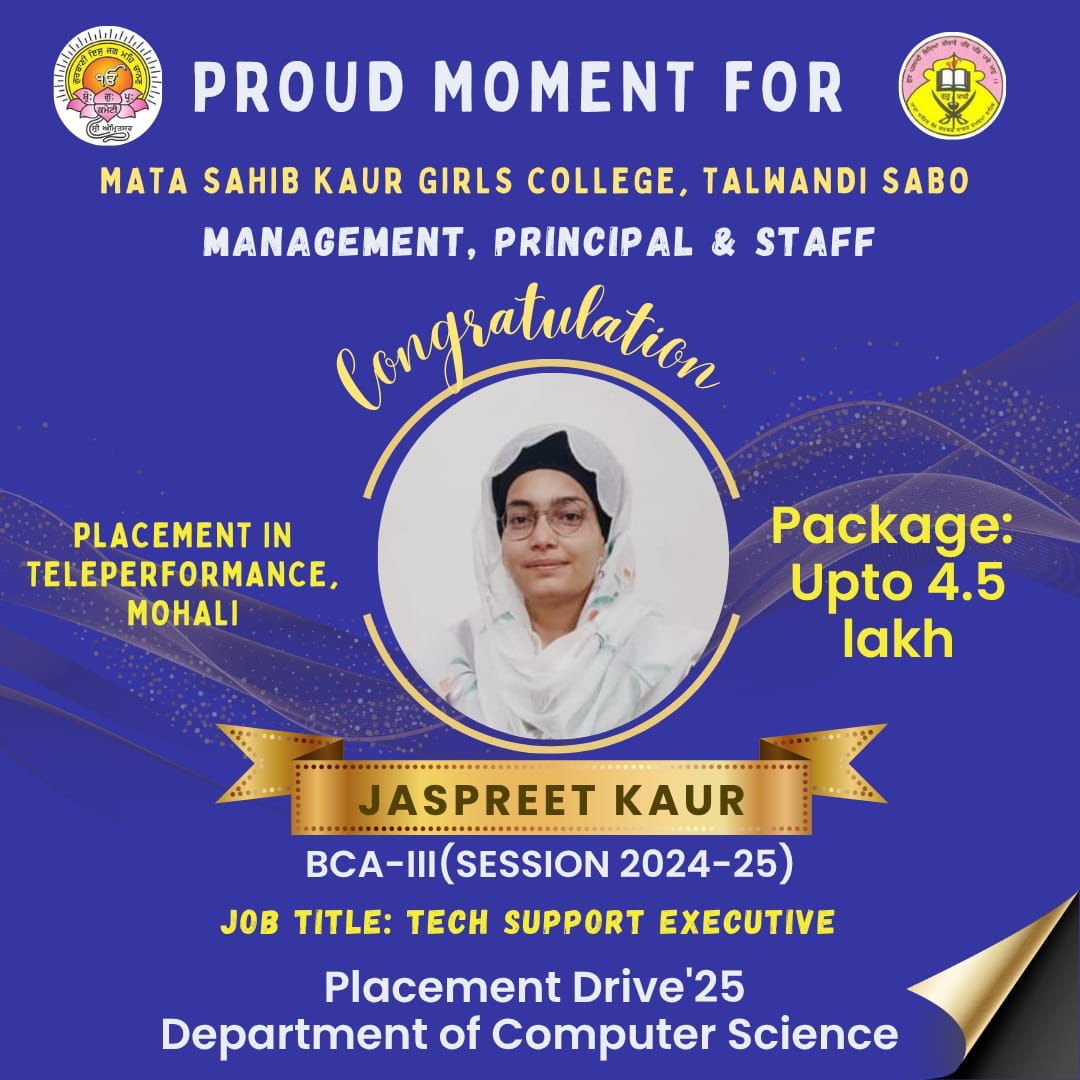 Mata Sahib Kaur Girls College was brought into being in July 1997 by the then SGPC President Jathedar Sardar Gurcharn Singh Tohra to imparted education to rural girls of Talwandi Sabo area. The college is named after the revered mother of Khalsa Panth, Mata Sahib Kaur Ji. The main endeavour was to inculcate basic as well as value based education to the girl students of the backward region of the state. The land was blessed as ‘Guru Ki Kashi’ by the tenth Master Guru Guru Gobind Singh Ji since then it has flourished as leading educational hub.
